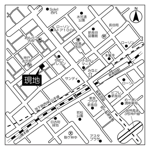 山陽線「新長田」徒歩5分 西神山手線「新長田」徒歩5分 |